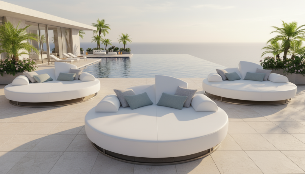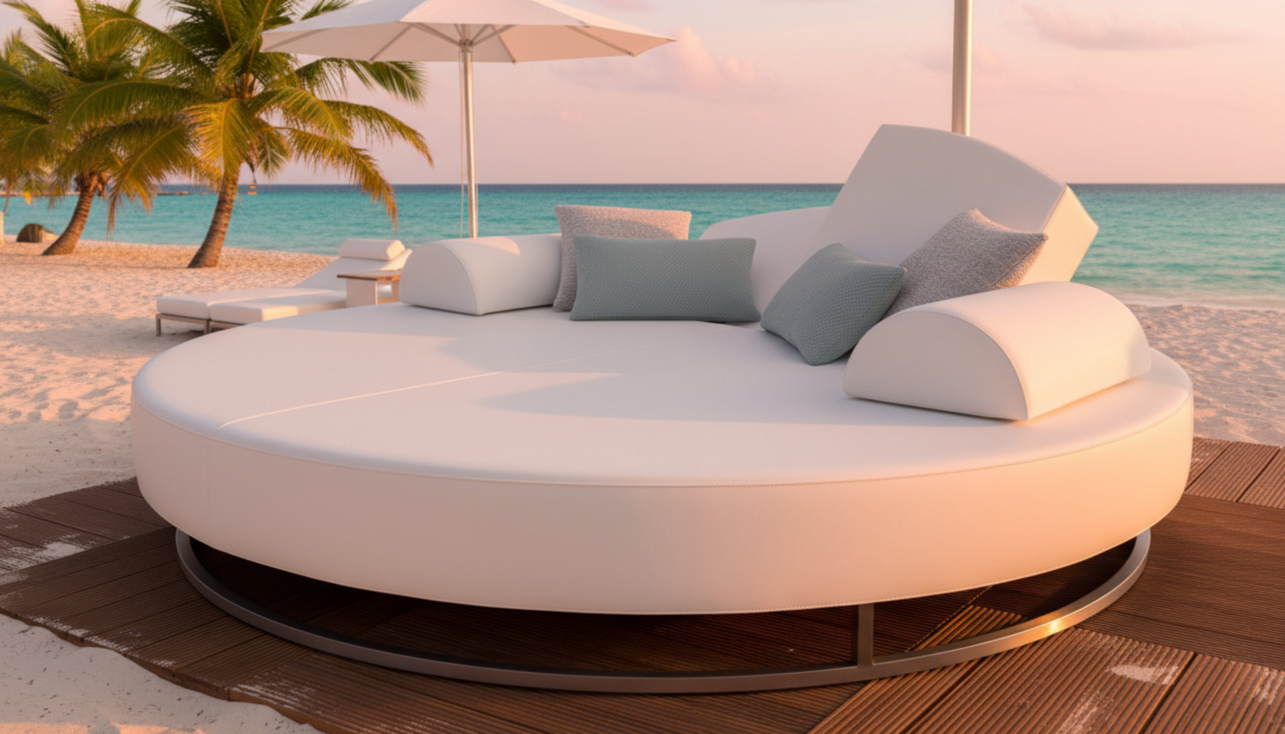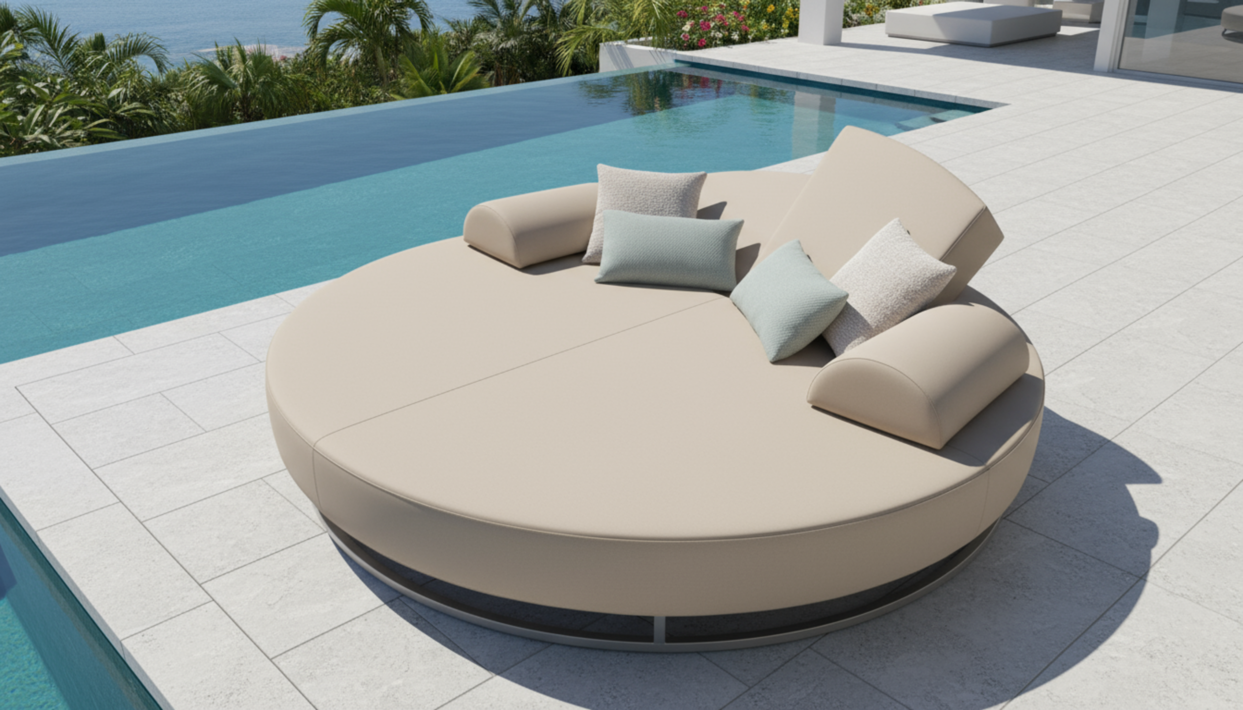 Een luxe ligeiland is specifiek ontworpen voor maximaal comfort en pure luxe. De royale afmetingen (diameter van 2,2 meter) bieden voldoende ruimte om alleen of samen te relaxen. De weerbestendige kussens ondersteunen uw lichaam perfect. U zakt weg in een wereld van zachtheid en sereniteit. De ergonomische vormen zorgen ervoor dat u urenlang comfortabel kunt liggen.